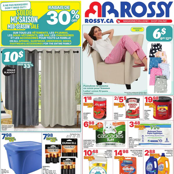La circulaire Rossy présente des réductions allant jusqu’à 30 % sur les vêtements, pyjamas et accessoires pour toute la famille, valable du 2 au 8 avril 2026.