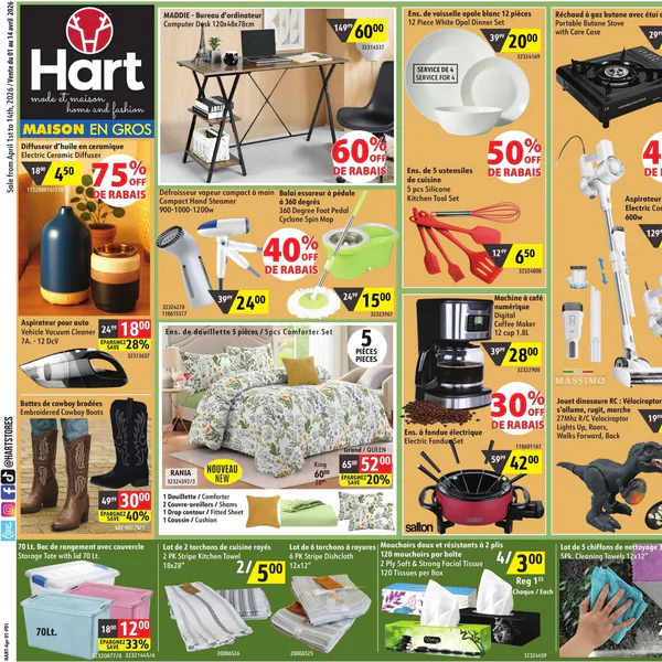 La circulaire Hart présente des offres allant du mercredi 25 février au mardi 10 mars 2026, incluant des produits comme un aspirateur électrique, une machine à café numérique, et des vêtements de marques en promotion.