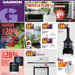 La circulaire Gagnon « La grande quincaillerie » est remplie d’offres à petit prix pour tous vos travaux à la maison. Profitez des offres en circulaire dans leurs succursales d’Amqui, Chénéville, Mont-Tremblant, Saint-André-Avellin et Saint-Jean-sur-Richelieu.