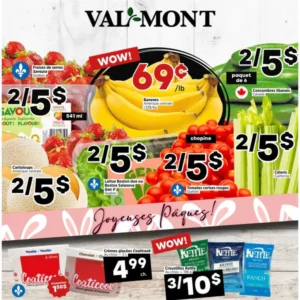 La circulaire Val-Mont, votre épicerie locale, met en valeur les fruits et légumes à bas prix ainsi qu’une vaste sélection de produits d’épicerie. Vous pouvez consulter les circulaires de l’épicerie Val-Mont du Plateau Mont-Royal, de Boucherville et de Rosemont chaque semaine !