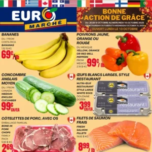 La circulaire Euro Marché présente les offres alléchantes en épicerie et les spéciaux de la semaine dans leurs 4 succursales de la région de Montréal. Les clients peuvent profiter de rabais sur une variété de produits frais, d’épicerie. Leurs circulaires hebdomadaires regorgent d’aubaines et de spéciaux alléchants, attirant ainsi de nombreux clients en quête de bonnes affaires. Les consommateurs peuvent y trouver une grande sélection de produits frais, locaux et importés.