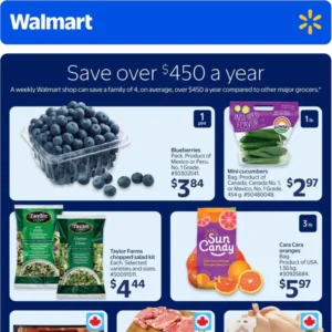 La circulaire Walmart est remplie d’aubaines alléchantes sur une variété de produits d’épicerie. Chaque semaine, parcourez attentivement les offres promotionnelles pour dénicher les meilleurs prix sur les articles essentiel au quotidien. Grâce à ces réductions, vous pouvez faire des économies considérables tout en remplissant votre garde-manger de produits de qualité.